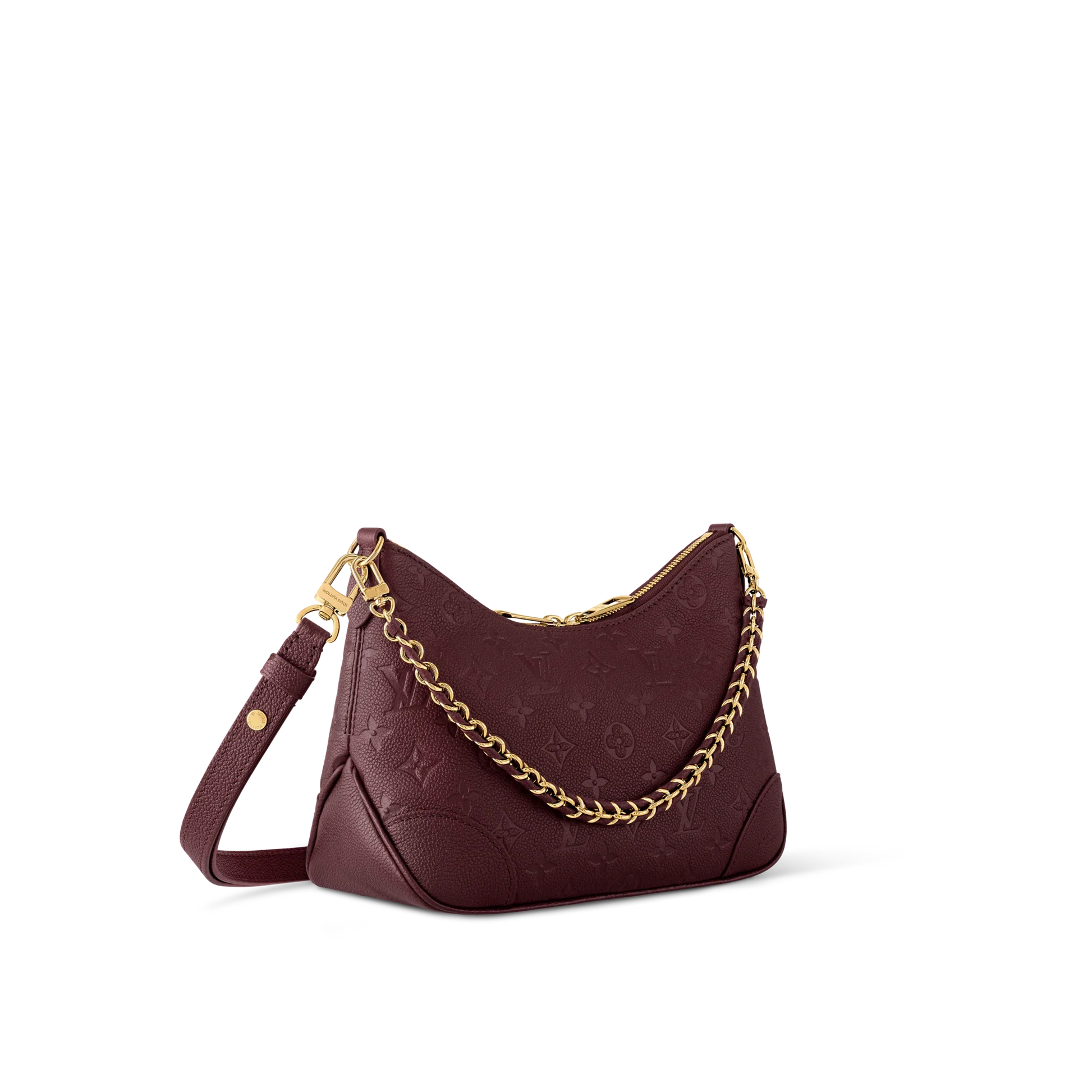 The classic Boulogne PM is reimagined for the season in a rich Grenat colorway that complements the sophisticated gold-toned hardware. Inspired by archival Louis Vuitton designs, this edition is crafted from Monogram Empreinte leather embellished with a braided chain that can be removed if desired. It can be styled cross-body, over the shoulder or carried by hand.