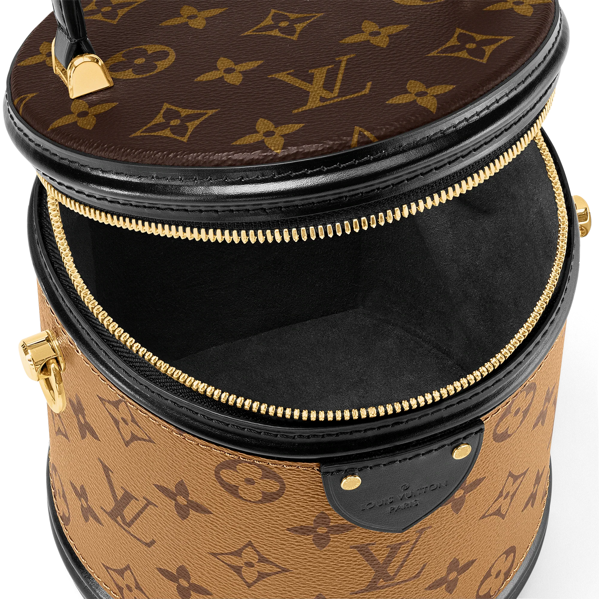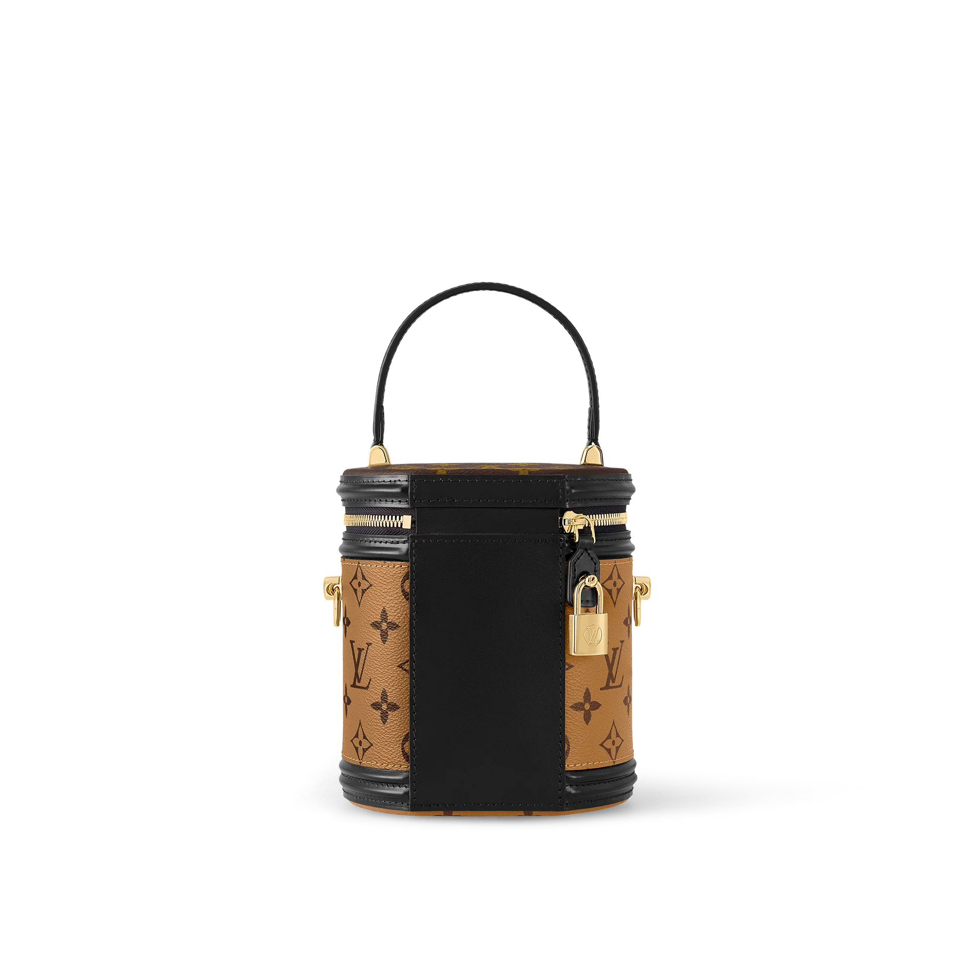 Featuring the historical shape of the LV Cannes beauty case, designer Nicolas Ghesquière revives a long-standing classic with the Cannes handbag. Petite in size and presented in a mix of Monogram and Monogram reverse coated canvas, the elegant piece reanimates a traditional silhouette steeped in Louis Vuitton heritage. A removable leather strap and top handle provide a range of carrying options.