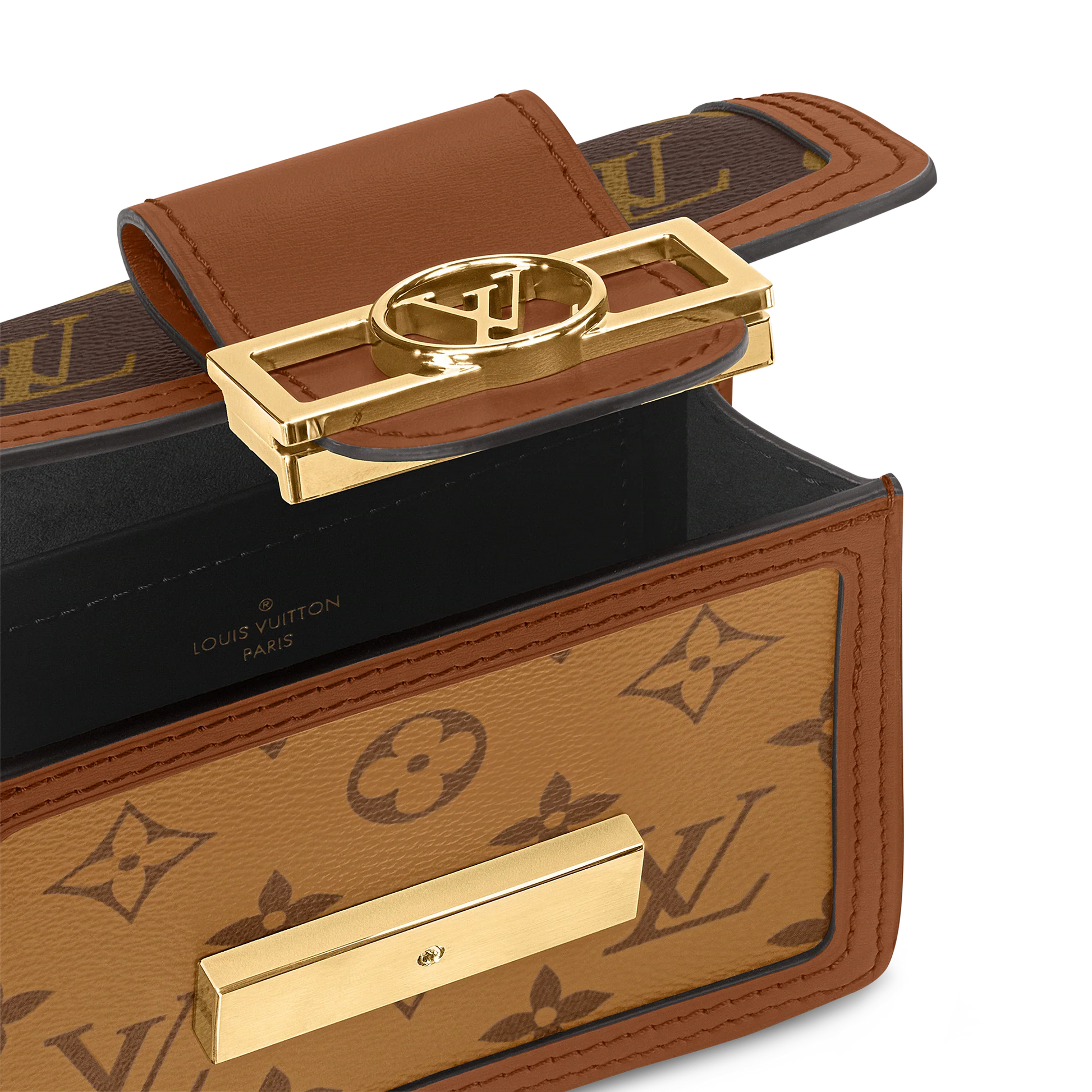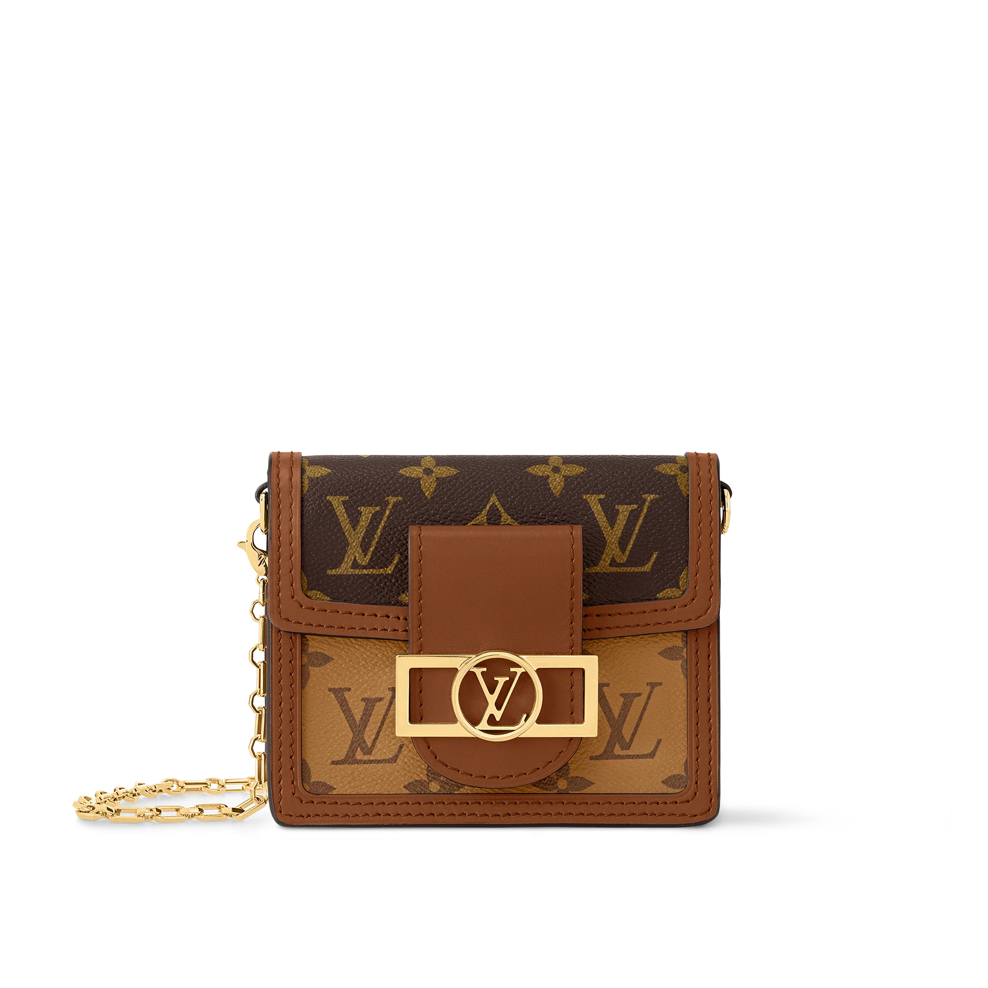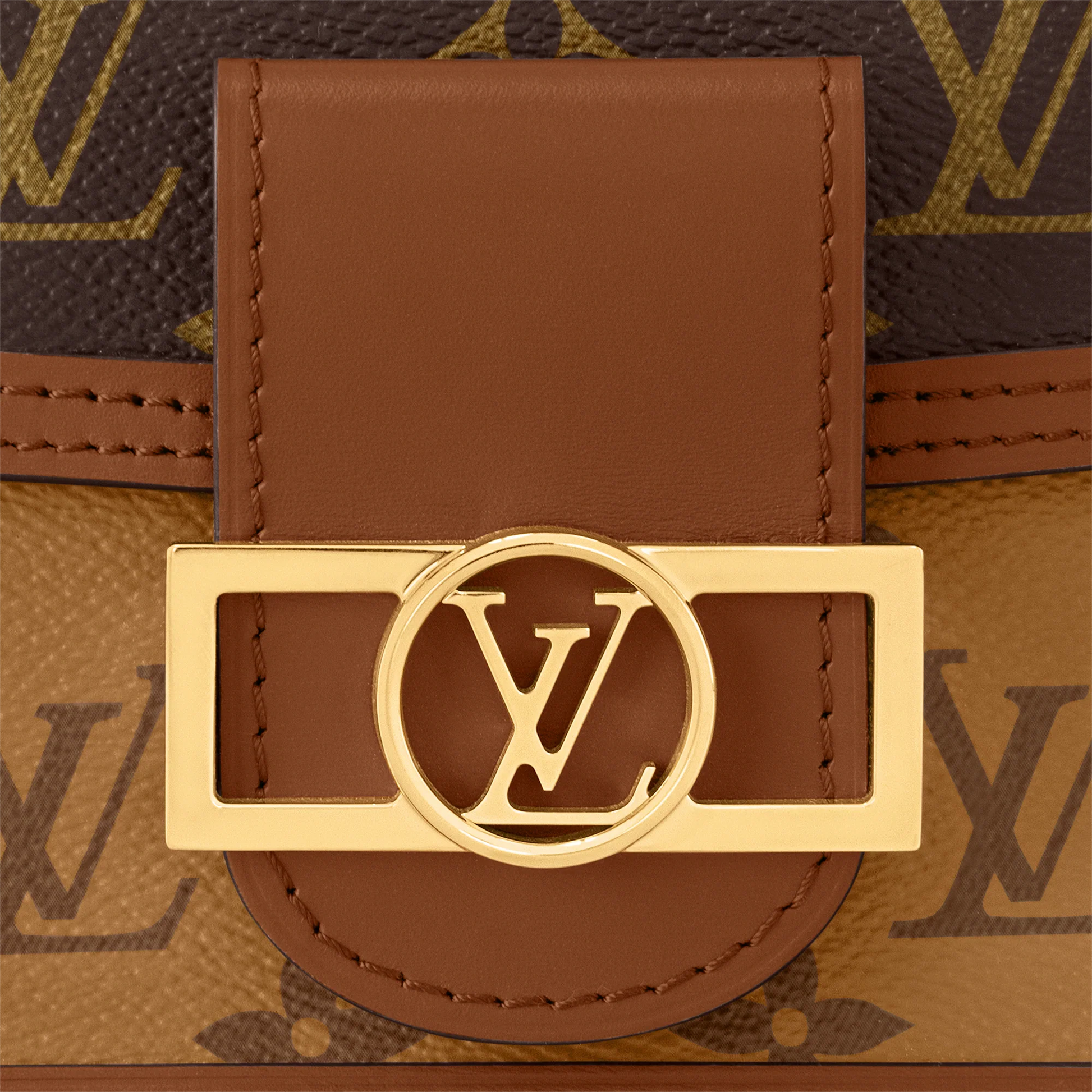 This adorable Micro Dauphine handbag is fashioned from Monogram and Monogram Reverse coated canvas with leather trim for a timeless allure. This new micro shape is embellished with the Dauphine’s adjustable and removable chain and fitted with buckle and LV Circle hardware. This is the perfect companion to accessorize almost any silhouette.