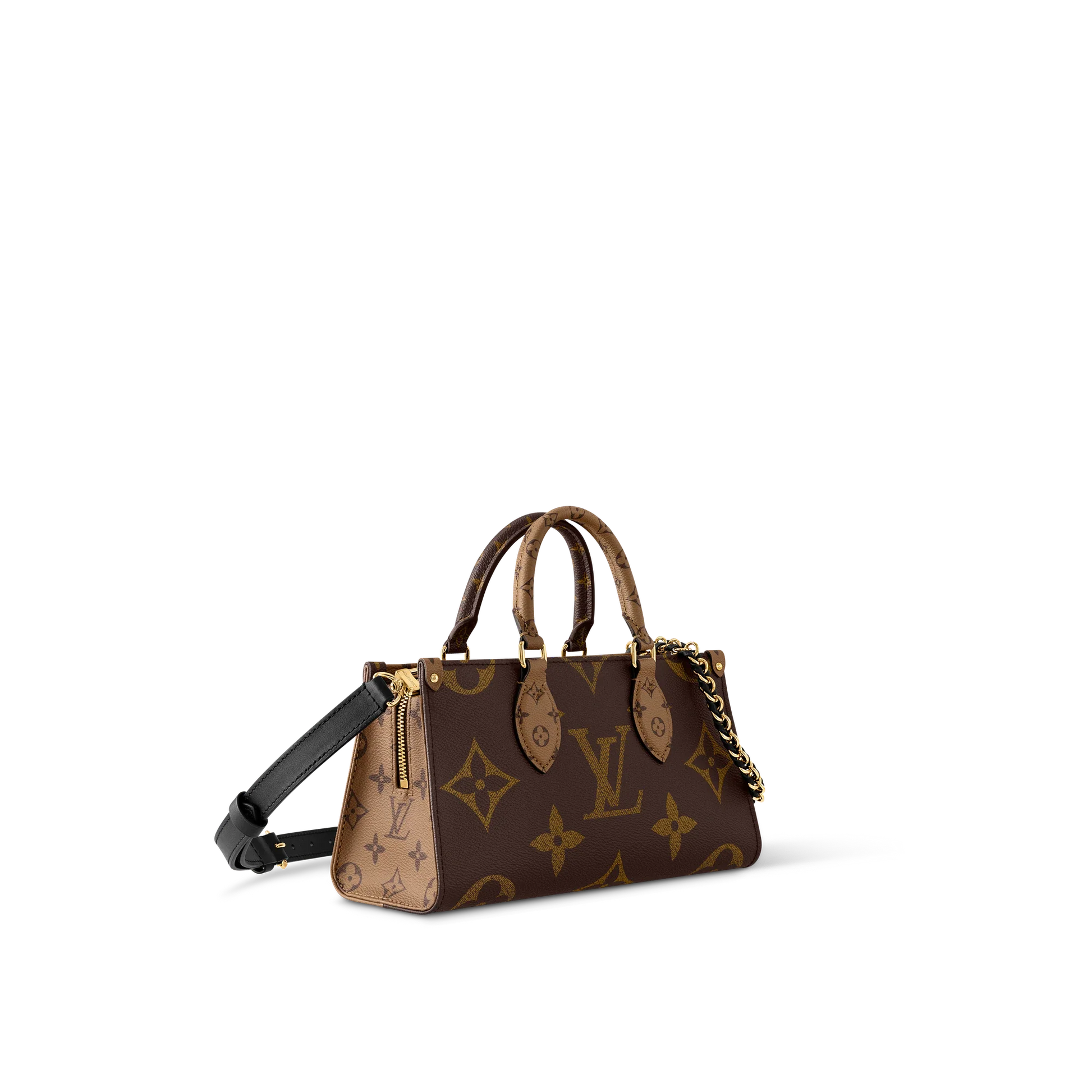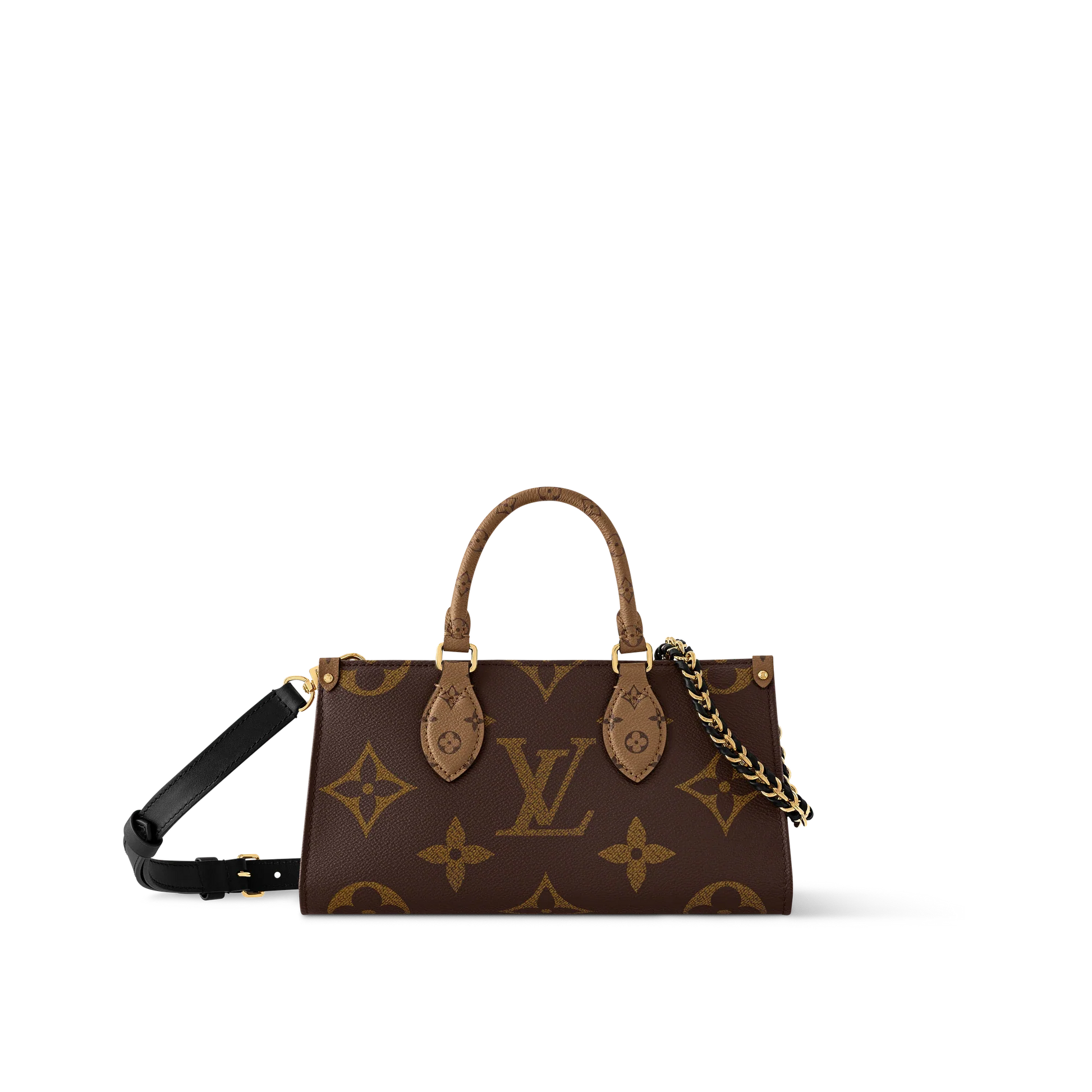 Showcasing the House’s Monogram Giant signature, this OnTheGo East West is a sophisticated everyday choice. Crafted from coated canvas, it is accented with Monogram Reverse coated canvas trims and gold-toned hardware. Fitted with two handles, a removable and adjustable strap, and a removable chain, the versatile design can be worn in a variety of ways and includes multiple compartments and pockets to keep valuables organized.