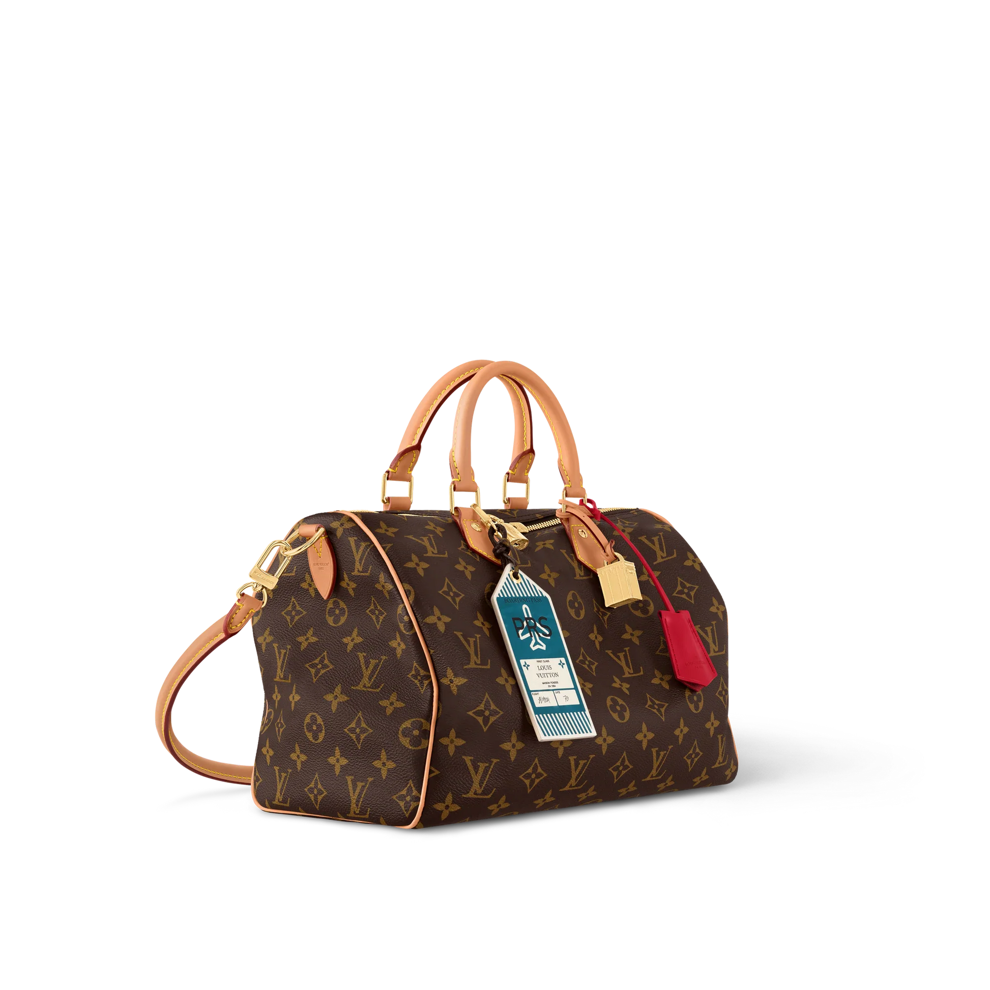 The Speedy Soft 30 Crafty is designed to make travel feel effortless and fun. Living up to its name, it is made from ultra-soft Monogram coated canvas with a striking red leather lining and matching key bell. Other features include a playful boarding pass and trunk charm, plus an internal zipped pocket to store a passport and other important items. The new shoulder Toron handle adds the final flourish.