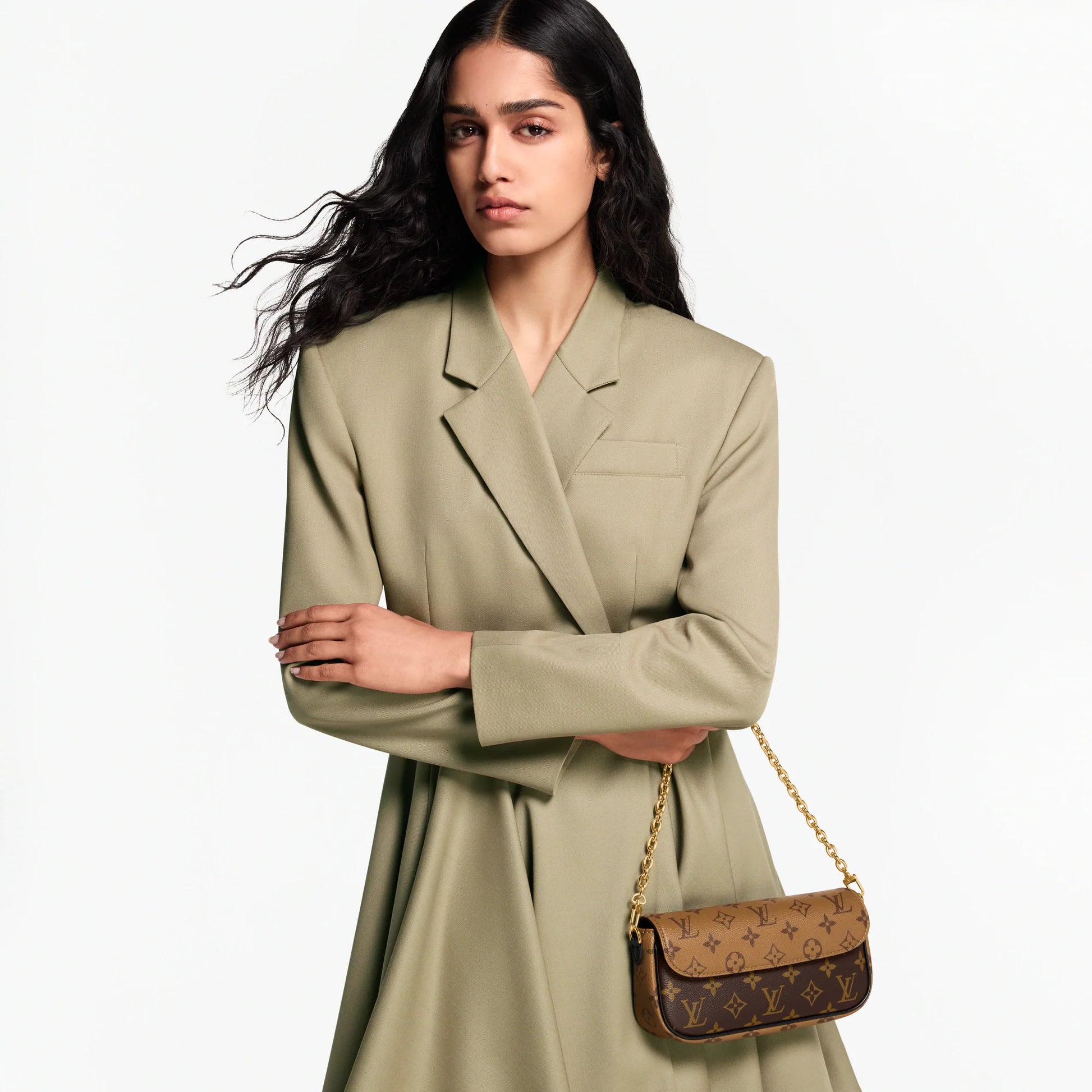 This edition of the Wallet On Chain Ivy showcases the House’s signature Monogram Reverse canvas, offering a directional take for the season. The elegant style is defined by a removable gold-toned chain that matches the iconic LV Initials. The organized interior reveals a flat pocket with three card slots, ideal for securing everyday essentials.